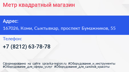 Метр квадратный, магазин по адресу 167026, Коми, Сыктывкар, проспект Бумажников, 55 в дальнейшем Организация, размещена в следующих категориях: