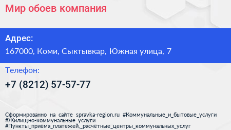 Мир обоев, компания по адресу 167000, Коми, Сыктывкар, Южная улица, 7 в дальнейшем Организация, размещена в следующих категориях: