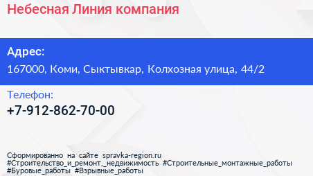 Небесная Линия, компания по адресу 167000, Коми, Сыктывкар, Колхозная улица, 44/2 в дальнейшем Организация, размещена в следующих категориях: