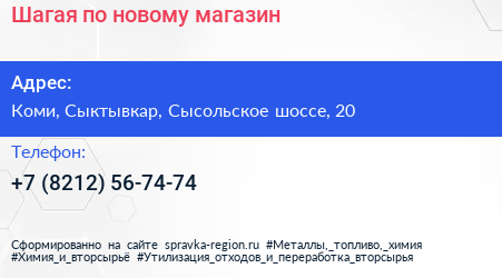 Шагая по новому, магазин по адресу Коми, Сыктывкар, Сысольское шоссе, 20 в дальнейшем Организация, размещена в следующих категориях: