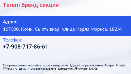 Terem, бренд-секция по адресу 167000, Коми, Сыктывкар, улица Карла Маркса, 182/4 в дальнейшем Организация, размещена в следующих категориях: