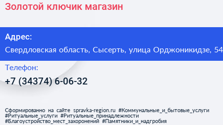Золотой ключик, магазин по адресу Свердловская область, Сысерть, улица Орджоникидзе, 54 в дальнейшем Организация, размещена в следующих категориях: