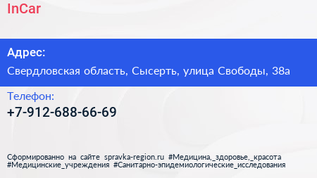 InCar по адресу Свердловская область, Сысерть, улица Свободы, 38а в дальнейшем Организация, размещена в следующих категориях: