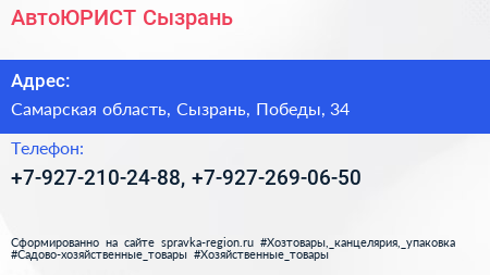 АвтоЮРИСТ Сызрань по адресу Самарская область, Сызрань, Победы, 34 в дальнейшем Организация, размещена в следующих категориях: