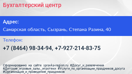 Бухгалтерский центр по адресу Самарская область, Сызрань, Степана Разина, 40 в дальнейшем Организация, размещена в следующих категориях: