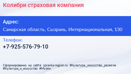 Колибри, страховая компания по адресу Самарская область, Сызрань, Интернациональная, 130 в дальнейшем Организация, размещена в следующих категориях: