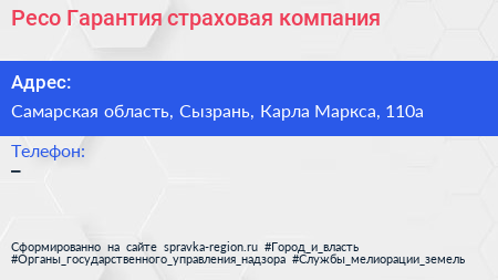 Ресо-Гарантия, страховая компания по адресу Самарская область, Сызрань, Карла Маркса, 110а в дальнейшем Организация, размещена в следующих категориях: