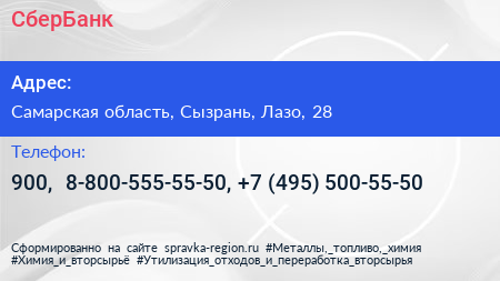 СберБанк по адресу Самарская область, Сызрань, Лазо, 28 в дальнейшем Организация, размещена в следующих категориях:
