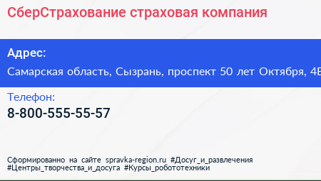 СберСтрахование, страховая компания по адресу Самарская область, Сызрань, проспект 50 лет Октября, 4Б в дальнейшем Организация, размещена в следующих категориях: