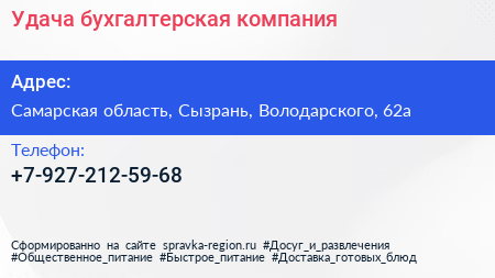 Удача, бухгалтерская компания по адресу Самарская область, Сызрань, Володарского, 62а в дальнейшем Организация, размещена в следующих категориях: