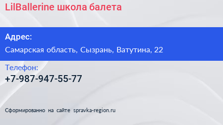 LilBallerine, школа балета по адресу Самарская область, Сызрань, Ватутина, 22 в дальнейшем Организация, размещена в следующих категориях: