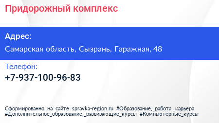 Придорожный комплекс по адресу Самарская область, Сызрань, Гаражная, 48 в дальнейшем Организация, размещена в следующих категориях: