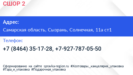 СШОР №2 по адресу Самарская область, Сызрань, Солнечная, 11а ст1 в дальнейшем Организация, размещена в следующих категориях: