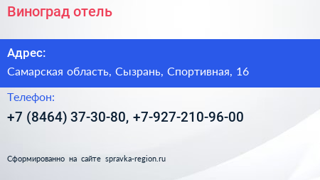 Виноград, отель по адресу Самарская область, Сызрань, Спортивная, 16 в дальнейшем Организация, размещена в следующих категориях: