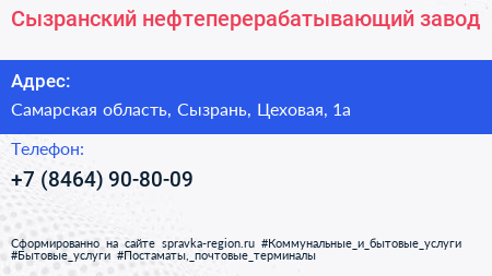 Сызранский нефтеперерабатывающий завод по адресу Самарская область, Сызрань, Цеховая, 1а в дальнейшем Организация, размещена в следующих категориях: