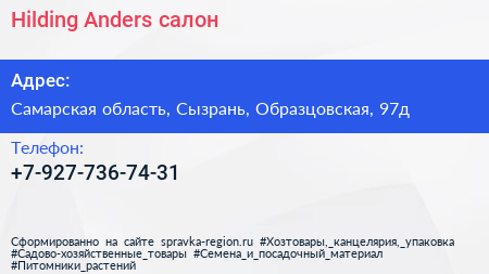 Hilding Anders, салон по адресу Самарская область, Сызрань, Образцовская, 97д в дальнейшем Организация, размещена в следующих категориях: