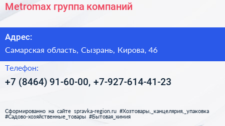 Metromax, группа компаний по адресу Самарская область, Сызрань, Кирова, 46 в дальнейшем Организация, размещена в следующих категориях: