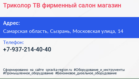 Триколор ТВ, фирменный салон-магазин по адресу Самарская область, Сызрань, Московская улица, 14 в дальнейшем Организация, размещена в следующих категориях: