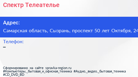 Спектр-Телеателье по адресу Самарская область, Сызрань, проспект 50 лет Октября, 24 в дальнейшем Организация, размещена в следующих категориях: