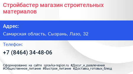 Стройбастер, магазин строительных материалов по адресу Самарская область, Сызрань, Лазо, 32 в дальнейшем Организация, размещена в следующих категориях: