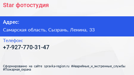 Star, фотостудия по адресу Самарская область, Сызрань, Ленина, 33 в дальнейшем Организация, размещена в следующих категориях: