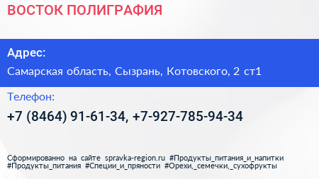 ВОСТОК-ПОЛИГРАФИЯ по адресу Самарская область, Сызрань, Котовского, 2 ст1 в дальнейшем Организация, размещена в следующих категориях: