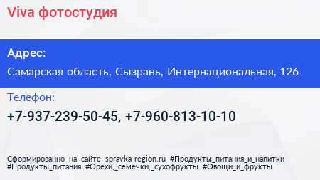 Viva, фотостудия по адресу Самарская область, Сызрань, Интернациональная, 126 в дальнейшем Организация, размещена в следующих категориях: