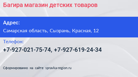Багира, магазин детских товаров по адресу Самарская область, Сызрань, Красная, 12 в дальнейшем Организация, размещена в следующих категориях: