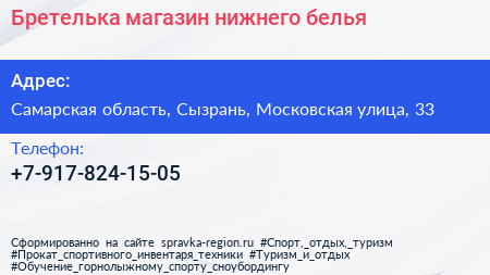 Бретелька, магазин нижнего белья по адресу Самарская область, Сызрань, Московская улица, 33 в дальнейшем Организация, размещена в следующих категориях: