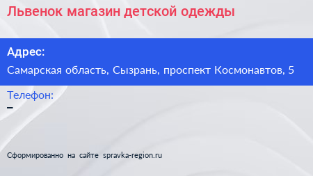 Львенок, магазин детской одежды по адресу Самарская область, Сызрань, проспект Космонавтов, 5 в дальнейшем Организация, размещена в следующих категориях:
