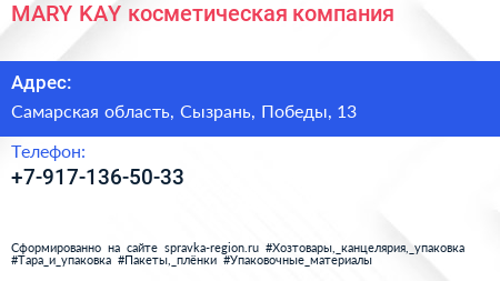 MARY KAY, косметическая компания по адресу Самарская область, Сызрань, Победы, 13 в дальнейшем Организация, размещена в следующих категориях: