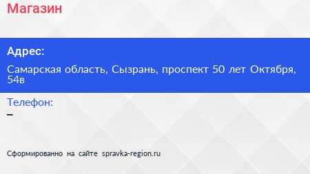 Магазин по адресу Самарская область, Сызрань, проспект 50 лет Октября, 54в в дальнейшем Организация, размещена в следующих категориях: