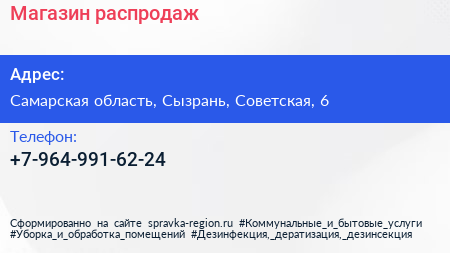 Магазин распродаж по адресу Самарская область, Сызрань, Советская, 6 в дальнейшем Организация, размещена в следующих категориях: