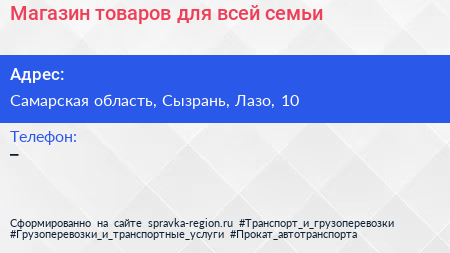 Магазин товаров для всей семьи по адресу Самарская область, Сызрань, Лазо, 10 в дальнейшем Организация, размещена в следующих категориях: