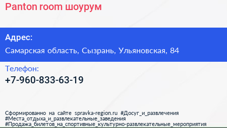 Panton room, шоурум по адресу Самарская область, Сызрань, Ульяновская, 84 в дальнейшем Организация, размещена в следующих категориях: