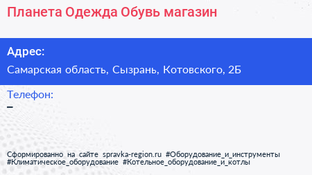 Планета Одежда Обувь, магазин по адресу Самарская область, Сызрань, Котовского, 2Б в дальнейшем Организация, размещена в следующих категориях: