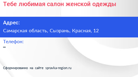 Тебе, любимая!, салон женской одежды по адресу Самарская область, Сызрань, Красная, 12 в дальнейшем Организация, размещена в следующих категориях: