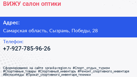 ВИЖУ, салон оптики по адресу Самарская область, Сызрань, Победы, 28 в дальнейшем Организация, размещена в следующих категориях: