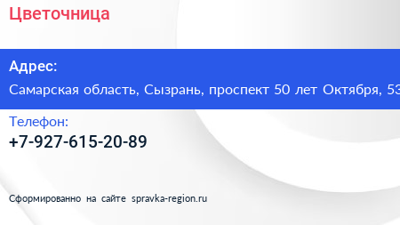 Цветочница по адресу Самарская область, Сызрань, проспект 50 лет Октября, 53 в дальнейшем Организация, размещена в следующих категориях: