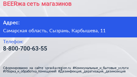 BEERжа, сеть магазинов по адресу Самарская область, Сызрань, Карбышева, 11 в дальнейшем Организация, размещена в следующих категориях: