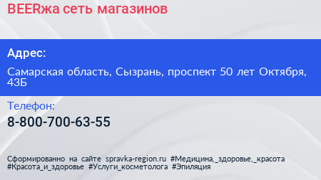 BEERжа, сеть магазинов по адресу Самарская область, Сызрань, проспект 50 лет Октября, 43Б в дальнейшем Организация, размещена в следующих категориях: