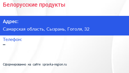 Белорусские продукты по адресу Самарская область, Сызрань, Гоголя, 32 в дальнейшем Организация, размещена в следующих категориях:
