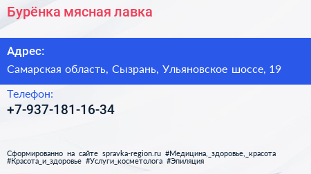 Бурёнка, мясная лавка по адресу Самарская область, Сызрань, Ульяновское шоссе, 19 в дальнейшем Организация, размещена в следующих категориях: