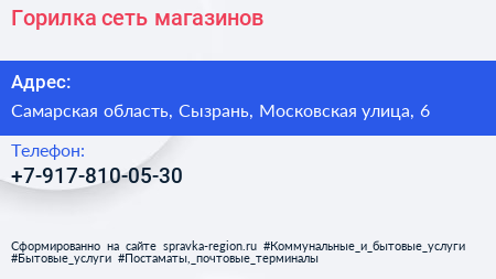 Горилка, сеть магазинов по адресу Самарская область, Сызрань, Московская улица, 6 в дальнейшем Организация, размещена в следующих категориях: