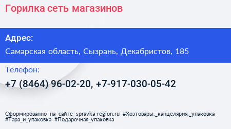 Горилка, сеть магазинов по адресу Самарская область, Сызрань, Декабристов, 185 в дальнейшем Организация, размещена в следующих категориях: