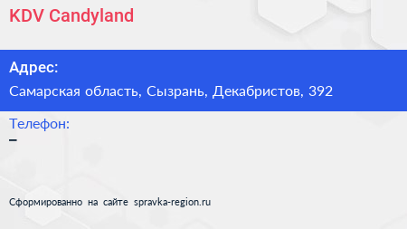 KDV Candyland по адресу Самарская область, Сызрань, Декабристов, 392 в дальнейшем Организация, размещена в следующих категориях:
