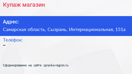 Купаж, магазин по адресу Самарская область, Сызрань, Интернациональная, 151а в дальнейшем Организация, размещена в следующих категориях: