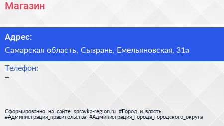 Магазин по адресу Самарская область, Сызрань, Емельяновская, 31а в дальнейшем Организация, размещена в следующих категориях: