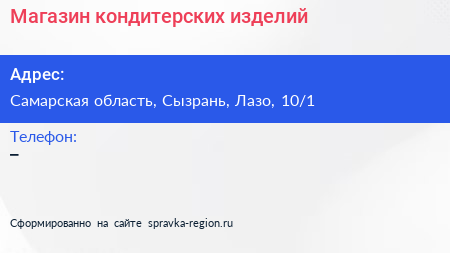 Магазин кондитерских изделий по адресу Самарская область, Сызрань, Лазо, 10/1 в дальнейшем Организация, размещена в следующих категориях: