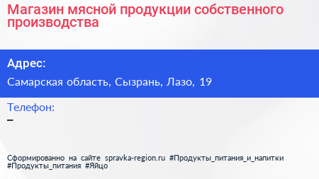Магазин мясной продукции собственного производства по адресу Самарская область, Сызрань, Лазо, 19 в дальнейшем Организация, размещена в следующих категориях: